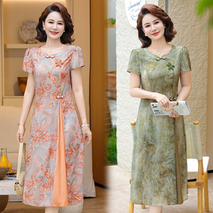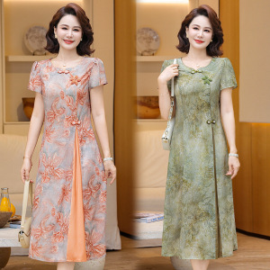 2025 夏の新ファッションプリントカジュアル韓国花リネン半袖ドレス女性のミドル丈スカート