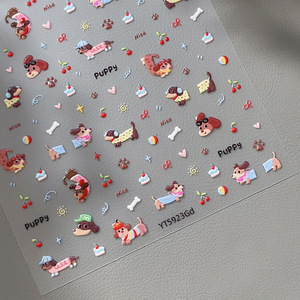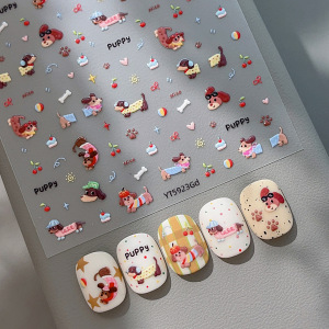 网红美甲贴纸果冻腊肠狗萌趣可爱小狗蛋糕卡通樱桃爱心指甲装饰贴