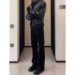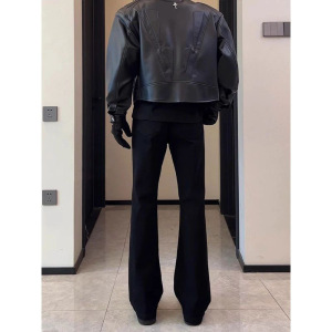 Cleanfit シミターマイクロフレアパンツメンズ夏ドレープブラックスリムパンツ背の高いカジュアルストレートパンツ