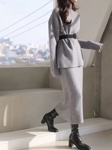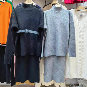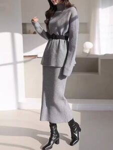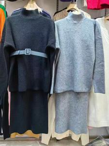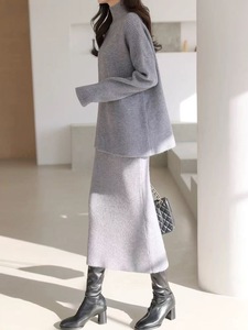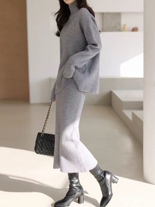 クロスボーダーレイジースタイルルーズニットスーツスカート女性のための秋と冬のハーフタートルネックプルオーバーセータースカート快適な2点セット