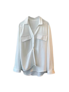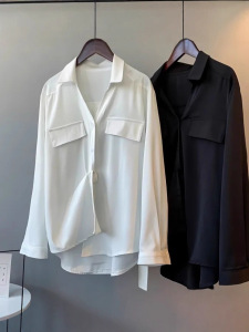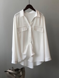 ドレープソフトカラーシャツレディーストップス長袖デザインニッチ春夏ルーズで多用途なレトロホワイトシャツ