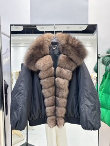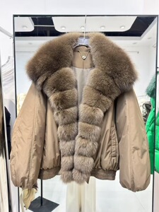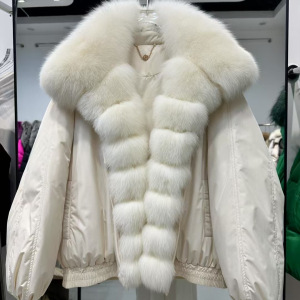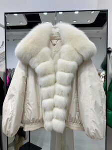 女式短款羽绒服冬季新款狐狸毛皮草白鸭绒羽绒服女宽松派克服外套
