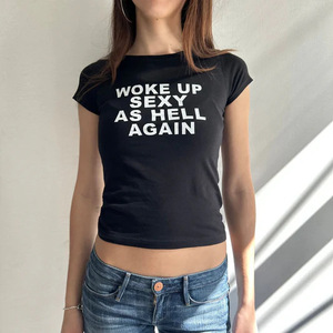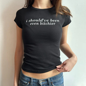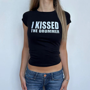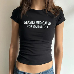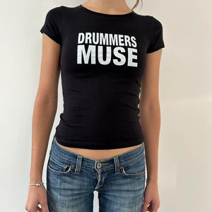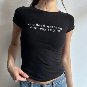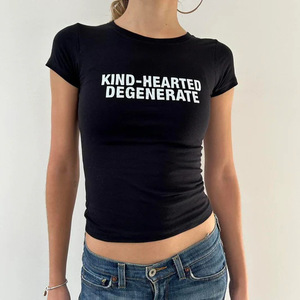 girlsroom アメリカの女性の夏の新しいレタープリントタイトなホットガールへそラウンドネックイン半袖 T シャツ