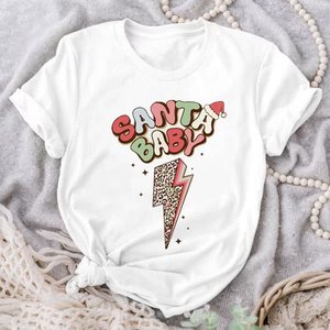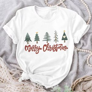 プラスサイズの女性のクリスマス Tシャツ女性の白いクリスマスツリーサンタクロースカジュアルクリスマスプリント半袖新年