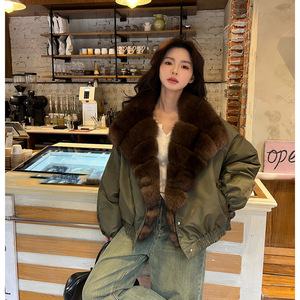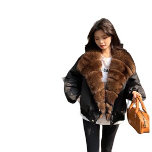 冬の新しいフォックスファーダウンジャケットレディースショートルーズジャケットヤングスタイルハーニンファー