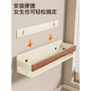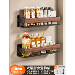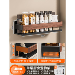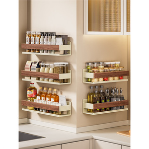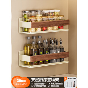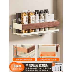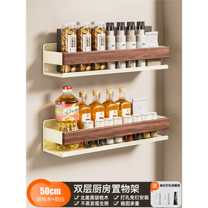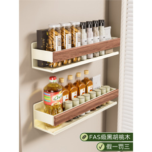 奶白胡桃木厨房置物架免打孔壁挂调料架墙上调味品挂架家用收纳架