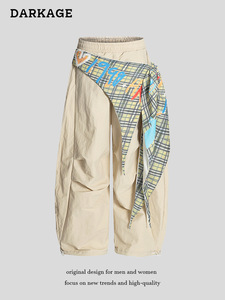 2025 アメリカンスタイルバットカーブソードオーバーオール女性の新しいレトロカジュアルワイドレッグパンツプリーツヒップホップパンツ