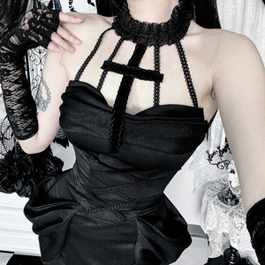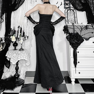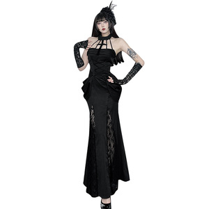 XS25160 ダークドレスサスペンダードレス 2025 新しいレースステッチヒップカバーフィッシュテールスカート女性のための