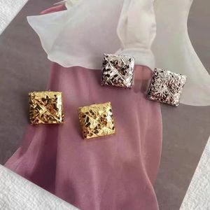 女性用のフラッシュモダンな織りスクエアイヤリング、ヨーロッパとアメリカのライトラグジュアリーニッチデザイン、ハイエンドのレトロなスクエアイヤリング、イヤリング