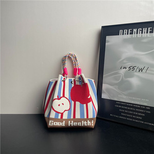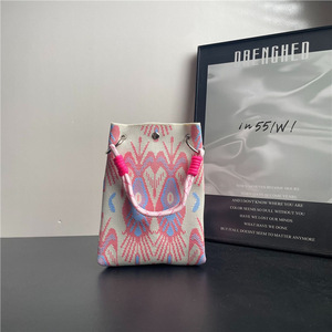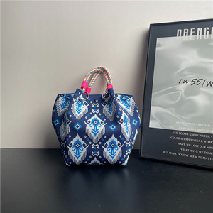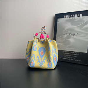 新款伴手礼花纹布包女大容量艾德莱斯花纹针织手提袋特色花纹小包