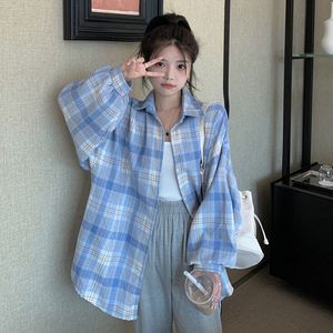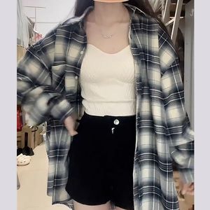 格子衬衣女韩系设计感小个子春秋复古百搭宽松衬衫防晒内搭外套