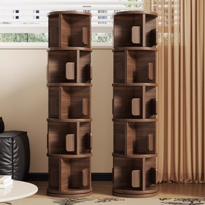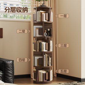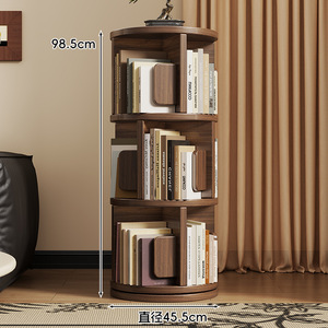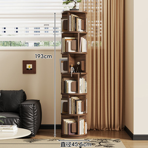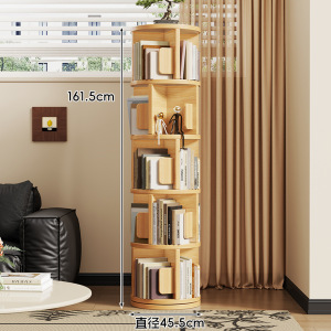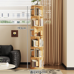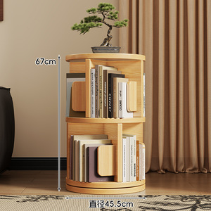 無垢材回転小型本棚床置き省スペース360度子供絵本収納ラックシンプルなリビングルームの収納ラック