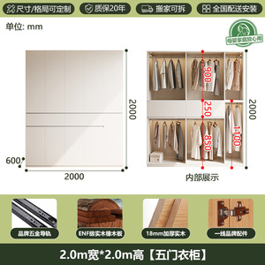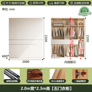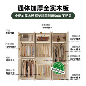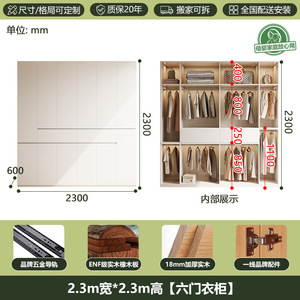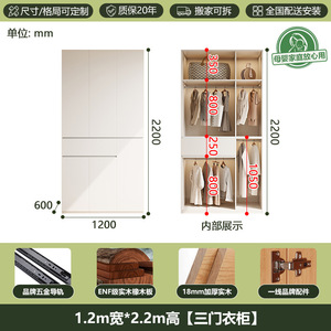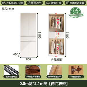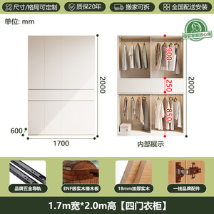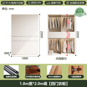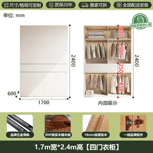 全無垢材ENFグレードオークワードローブホワイトクリームスタイルホームモダンシンプルセグメント化ハンドルレス大型ワードローブ