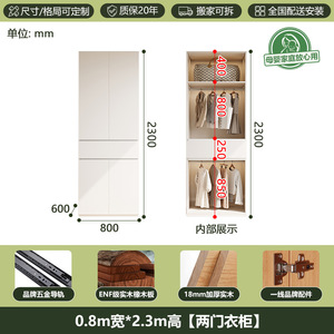 【長さ0.8m×高さ2.0m】2枚扉ワードローブ【オール無垢材】ENFグレード