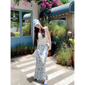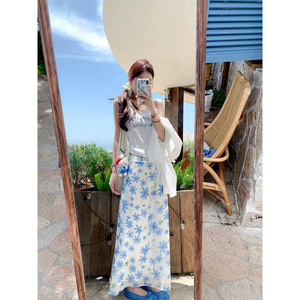 3つの完全な標準、Tmall品質、5ラインエッジ、韓国風ハイウエストAライン花柄スカート、女性用