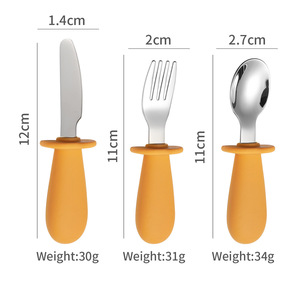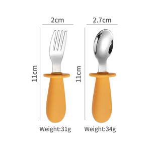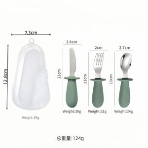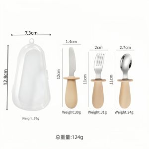316 ステンレス鋼子供用食器シリコーンナイフ、フォーク、スプーンベビー授乳補助食品ショートハンドルスプーン屋外ポータブルセット