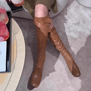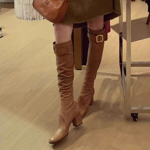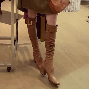 小香風ベルトバックル伸縮性スリムブーツ レディース 2025年新作 秋 厚底ハイヒールロングブーツ オーバーニーブーツ ライダーブーツ