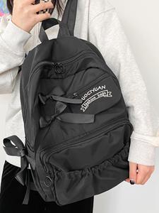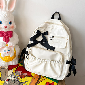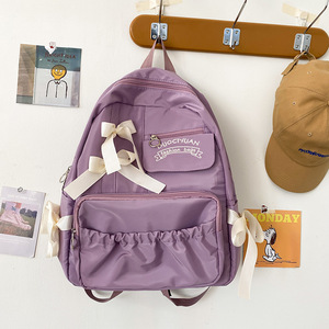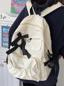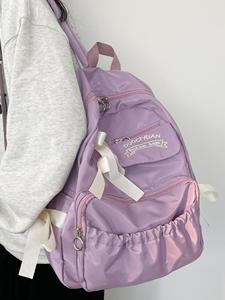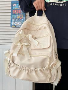 清新甜美学院风书包女初中生韩版洋气蝴蝶结双肩包纯色高中生背包