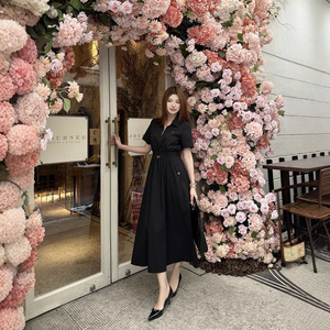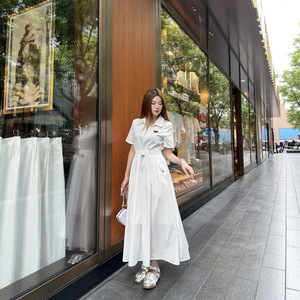 トレンドブランド25ss春夏新作半袖ワンピースウエスト痩身クラシック三角ロゴ白黒ワンピース