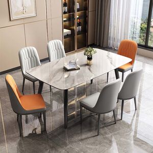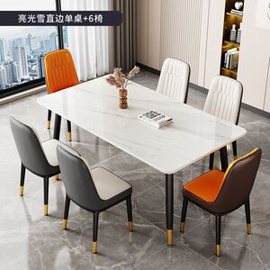 北欧现代轻奢岩板餐桌椅组合简约出租屋家用吃饭桌子小户型八仙桌