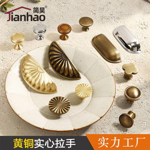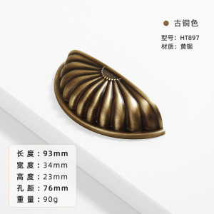 北欧风金色贝壳拉手实心黄铜衣柜门把手仿古全铜橱柜药柜抽屉拉手