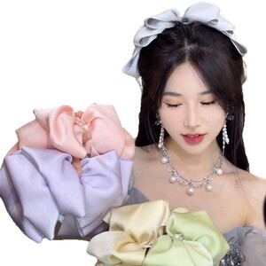 女性の後頭部用のパールの大きなリボンヘアピン、かわいいヘアピン、ヘアアクセサリー、高級帽子、ワンラインスプリングクリップ卸売