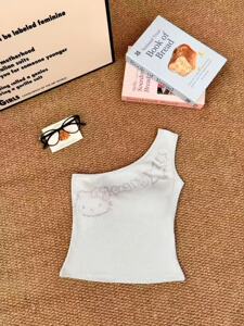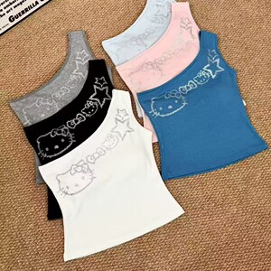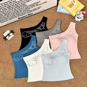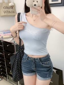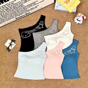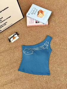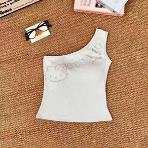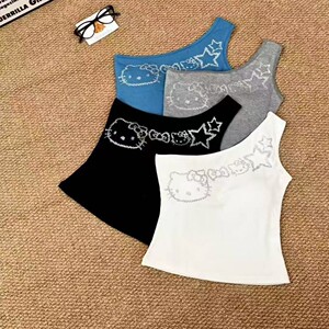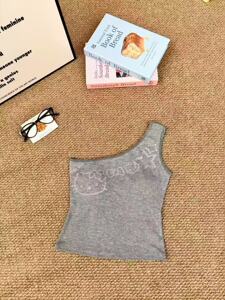夏の新しいホットガールレターキャットホットダイヤモンドオフショルダーショートベストオフショルダーオールマッチトップ女性のトレンディな韓国ニッチ