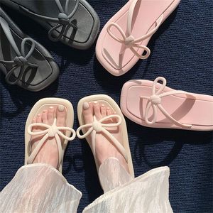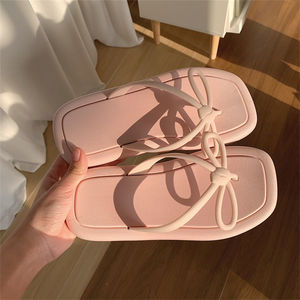 学生ガールの柔らかい底の妖精スタイルのリボンアウターウェア海辺の滑り止めビーチサンダル女性の夏イン