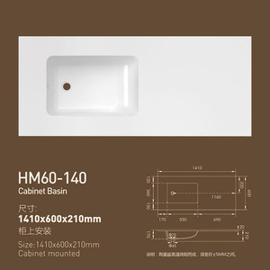 幅60CMのバスルームカウンタートップセラミック一体型洗面器、光沢のある肌の感触のバルコニーキャビネット洗面器、シングル洗面器、カット可能