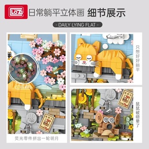 LOZ1296 春の列車 1386 日常横たわる立体絵画小粒子組み立てビルディングブロック男の子のおもちゃギフト