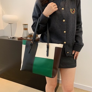 2025 新しいトレンディな韓国スタイルの対照的な色のハイエンドの質感の大容量トートバッグ女性の多用途学生クラスバッグショルダーバッグ