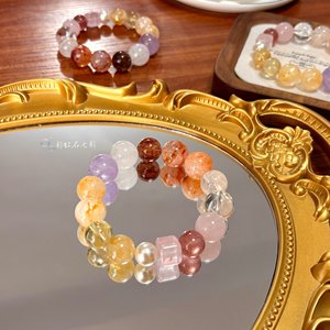 [春のレモン] オリジナル天然ドーパミンクリスタルマルチジュエルブレスレットライトラグジュアリー多用途 2025 新しいハンドジュエリー