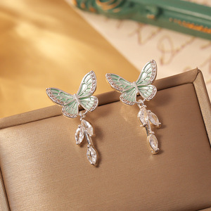 薄荷曼波绿色蝴蝶耳钉高级感小清新锆石耳坠小众设计精致百搭耳环