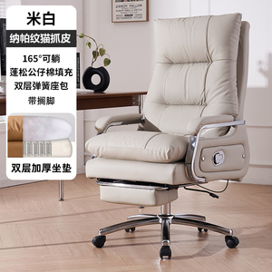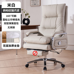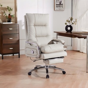 オフホワイトの第一層牛革 + フットレスト、リクライニング + フリーファンクション