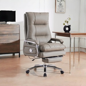 スモークグレーの第一層牛革 + フットレスト、リクライニング + フリーファンクション
