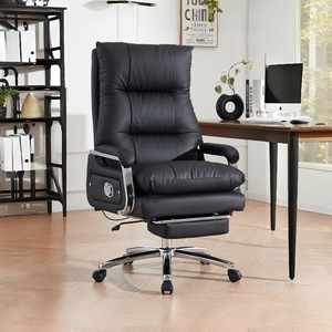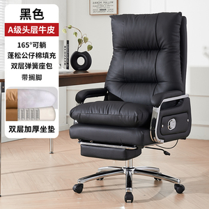 純黒の第一層牛革 + フットレスト、リクライニング + フリーファンクション