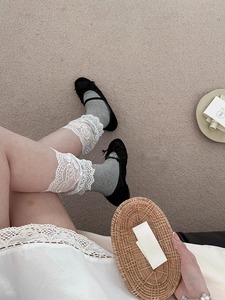 miu バレエ風レースパッチワークパイルソックスガールズミッドカーフソックス韓国ミッドカーフグレーメッシュソックス