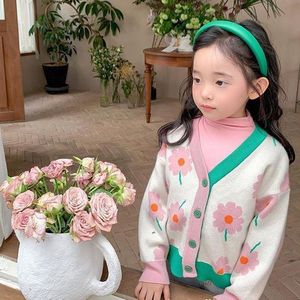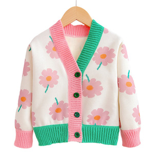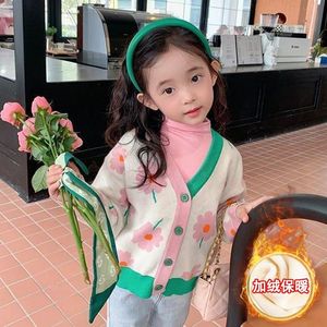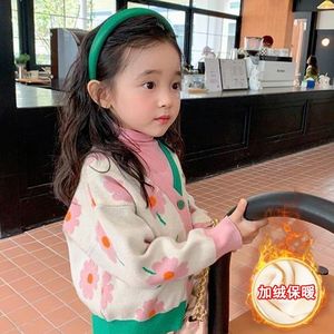 女の子のセーターカーディガンプラスベルベット厚みのあるコート花新しい子供の秋と冬のファッショナブルなベビートップ韓国スタイル