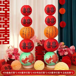 2025蛇年新款纸灯笼挂饰大红福字过年场景布置国庆春节装饰品宫灯