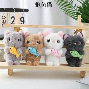 インターネット有名人かわいい魚を抱える子猫ペンダントぬいぐるみ人形バッグペンダントキーホルダー布人形人形