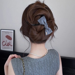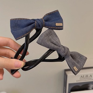 韩系高级感牛仔蓝蝴蝶结发夹女高级感扭扭夹发卡大号后脑勺鸭嘴夹