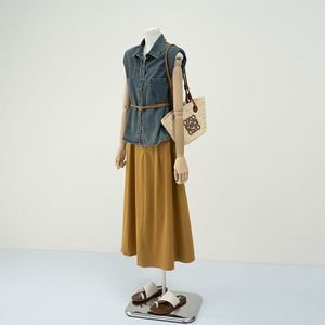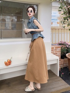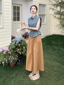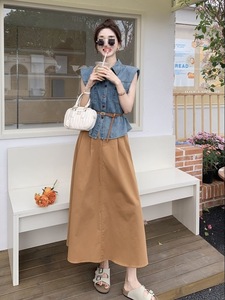 轻熟风韩系牛仔无袖衬衫套装裙女夏季新款小个子半身裙两件套新款