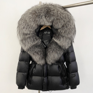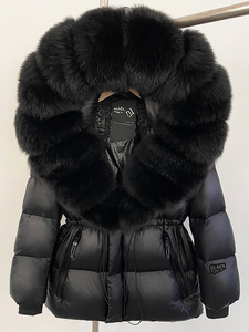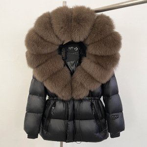 冬のグースダウンダウンジャケット女性の新しいハイエンド毛皮キツネの毛皮の大きな毛皮の襟フード付きダウンジャケットミッドレングスコート