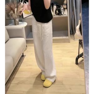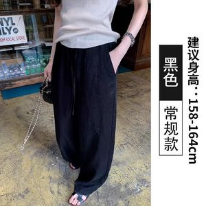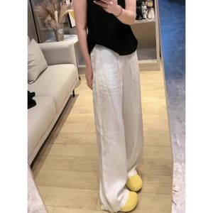 クロスボーダーホワイトリネンワイドレッグパンツ女性のための夏 2025 新しいカジュアルルーズドレープ軽量ストレートアイスシルク模造綿とリネン