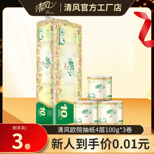 清风卷纸4层100g卷*3卷散装筒卫生纸欧院家用厕纸巾批发清风卷纸