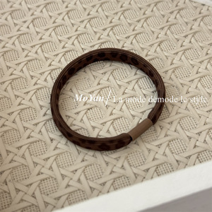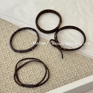 韓国版の女性用シンプルレトロヘッドバンド、多用途のコーヒー色のヒョウ柄ベーシックヘアバンド、高弾性と耐久性のあるポニーテールゴムバンドレザーケース