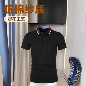 2024 新メンズ模造綿糸ポロプリントロゴ文化シャツ作業服ジャカード半袖パーティー作業服半袖