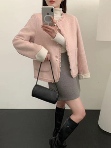 2025年小香风双面羊绒大衣女短款拉毛AB两面穿小个子羊毛呢外套