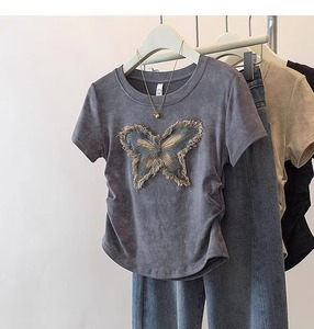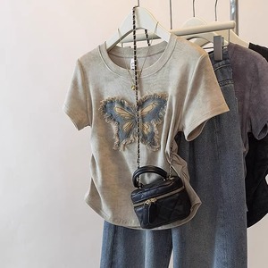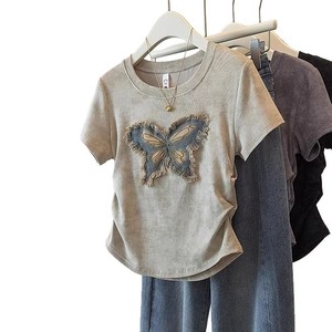 小众微胖mm大码女装春夏季新款显瘦甜辣上衣短袖t恤贴片绣花蝴蝶