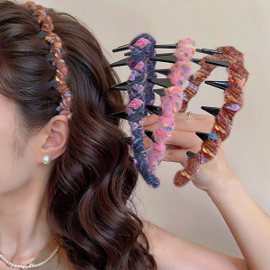 夏季气质波浪发箍女蓬松毛绒编织发饰彩色压发带高级感固定头箍